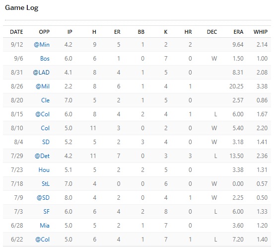 Zack Littell – 5 2/3 IP, 4 ER, 5 hits, zero walks, 3 Ks, ERA at 3.86 vs. Matthew Liberatore – 6 IP, 2 ER, 5 baserunners, 6 Ks, ERA at 4.30. This matchup was billed as, “Streamonator is telling you to start neither, but you’re in a H2H matchup and you need every start you can get so you’re starting both of these guys with your hands over your eyes.”