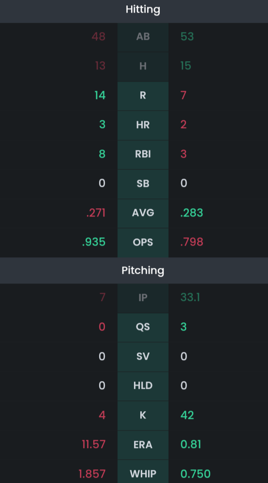 The upshot of losing J.Lopez is I had an easy drop to activate O.Cruz. It’s hard to find a silver lining with the Eovaldi news. This guy put me near the top in ERA and WHIP, plus leading my staff in QS. Sad trombone!