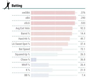Canzone’s profile from 2025 compares most similar to Bobby Witt Jr.’s 2023 season as he was emerging as a force in the league. Canzone supports his historically high batting averages across all levels of the minor leagues with an xBA of .290. The power metrics are impressive, with a 50% hard hit rate in 2025. His average exit velocity compared well to Austin Riley and Jordan Walker, while his barrel rate was in line with Matt Olson and Eugenio Suarez. The plate discipline could be a bit better, but it is only slightly below league average at this point in time and has been improving year over year, specifically against breaking balls. He did manage a respectable 22% strikeout rate with a 7.5% walk rate. Give me a .280 season with 20+ homers in a solid lineup for the Seattle Mariners in 2026.
