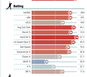 Those 0 homers really stick out like a sore thumb. But he sure looks similar to what he’s been the last few years when he hit 25, 21 (in 102 games), and 25 homers. He’s got 9 barrels in fact, with nary a homer to show for it yet. That just screams statistical oddity. He’s got a 67.7% HardHit% , tops among qualified hitters, and his 94.1 EV would mark his best since 2020. His statcast page looks as good as ever.