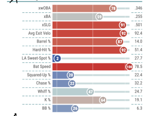 Once I got Tucker, I really targeted Caminero as my number 2 bat. I know that moving back to the Trop might ding his homers a little, but should I really worry that much? Here is how his Statcast page looked in a season where he turned 22 in the middle.