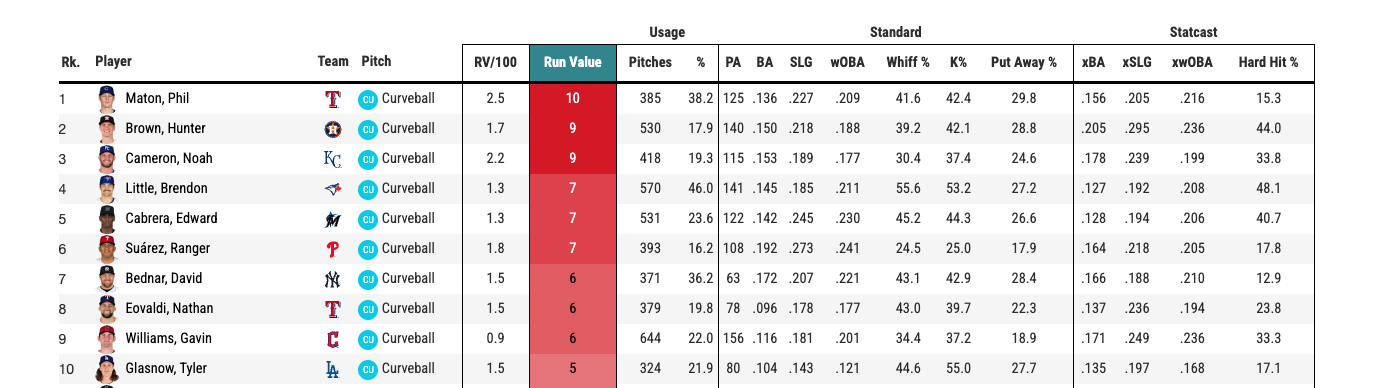 That’s as a rookie. He’s up there with some of the best curves by starters and relievers. Lowest xOBA by an individual pitch? He was 6th. The top six is ridink. You don’t believe me? Here: