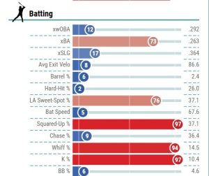So when I look at Vargas, I see the chance that he does a Yandy Diaz impersonation, minus the comic book biceps. For years now, Diaz has been the poster boy for a middling roto 1B who’s a points league standout. Here’s saying Vargas follows in his footsteps, 166 spots later on draft day.