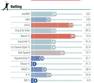 Last year Vargas hit .234 with a .717 OPS, a 40th percentile xSLG, and a whopping 16 HR. That doesn’t exactly scream “standout,” particularly at a position populated by guys like Nick Kurtz, Pete Alonso, and Bryce Harper. And if we were talking about roto leagues, I would completely agree. But we aren’t. We’re talking points leagues. And here, we look at his 70th% walk rate, and 72% strikeout rate, and 32 doubles, and we dream.