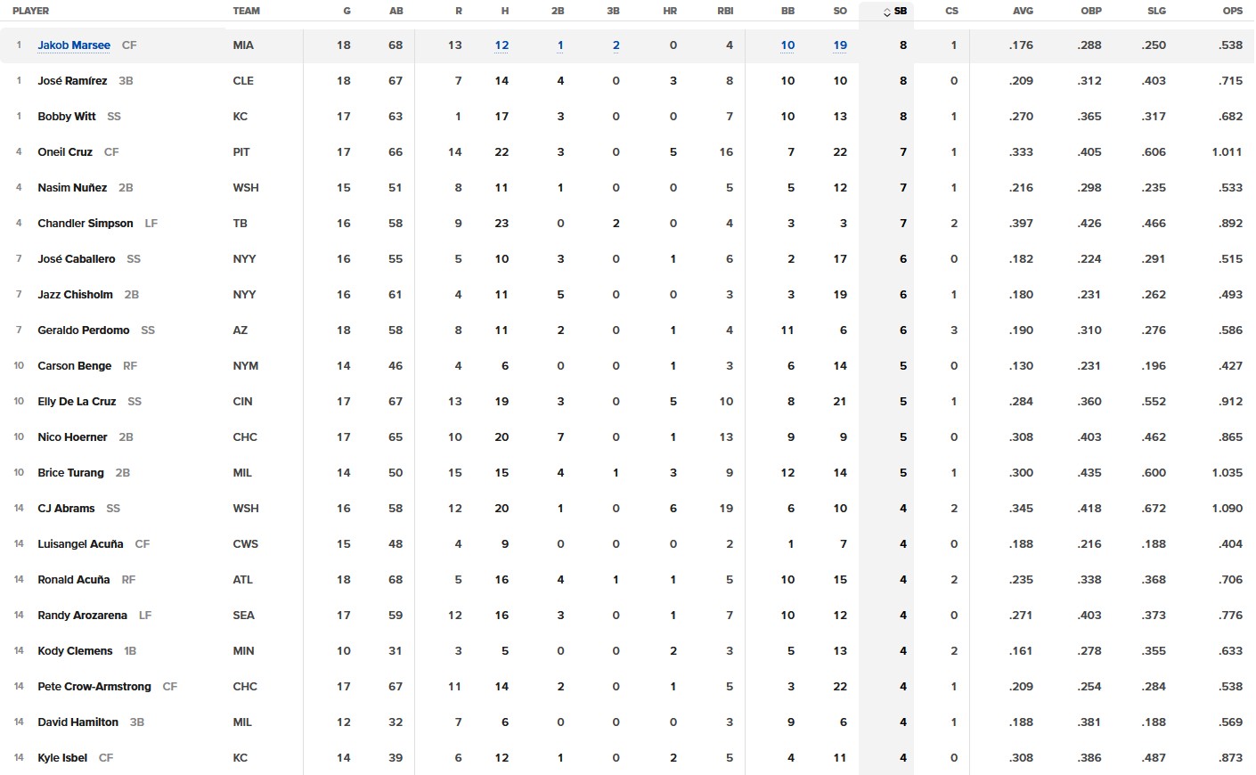 Got some prime Speed Dial and SAGNOF targets on here like Carson Benge, Luisangel Acuna, David Hamilton, and Jose Caballero. Not a one of them, however, is hitting above the .200 mark.