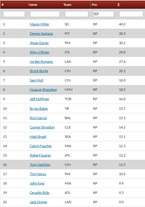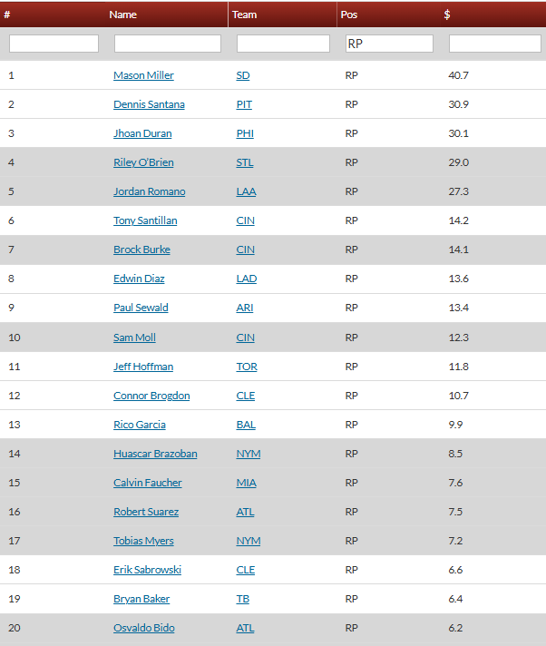 Don’t forget to keep that there Razzball Bullpen Chart bookmarked. It’s been updated with the latest, and I’m usually quick to get it touched up once any type of news drops. And if you’re not a subscriber, I do highly, highly, highly recommend it. If’n you’re of the mind to consider it, you can find all the info here. I’m partial to the Relievonator Game Log Tool. It shows the last two weeks of relief appearance game logs. Every single one. And the inning they were called in. It’s gold.