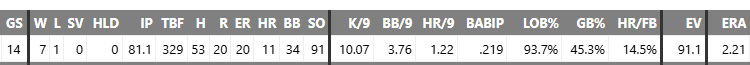 | 91 | Aaron Nola | PHI | 7.2 | 98 | 60 | 59 |