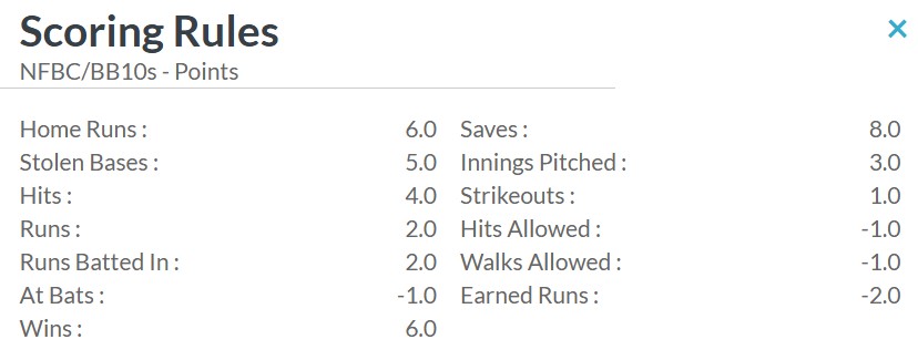 - Roto vs Points means DON’T build for category stability like you would in a Rotisserie league. You don’t HAVE to lock in category-specific guys.