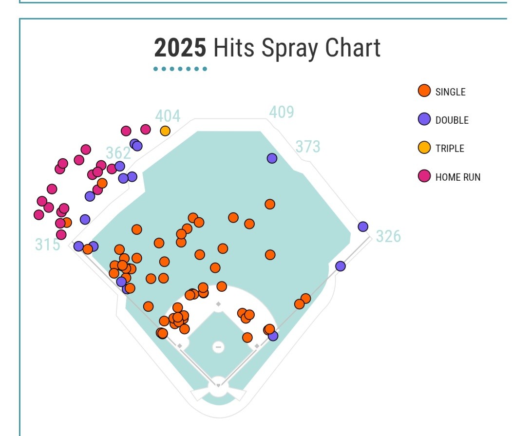 2. Junior Caminero – If I were Caminero, I would show up at Big Stein Stadium next year and refuse to play back in the Trop. Okay, that is kinda unfair. He’s likely a 32-35 homer guy in a MLB park, just maybe not easy 45 homers. Hilariously, if he called Bing Bong home? He would’ve hit 51 homers. Oh, and because I think I forgot to do it when it was time, Cal Raleigh would’ve had 69 homers in SacTown. Nice. Preseason Rank #9, 2025 Projections: 82/28/88/.264/7 in 572 ABs, Final Numbers: 93/45/110/.264/7 in 602 ABs