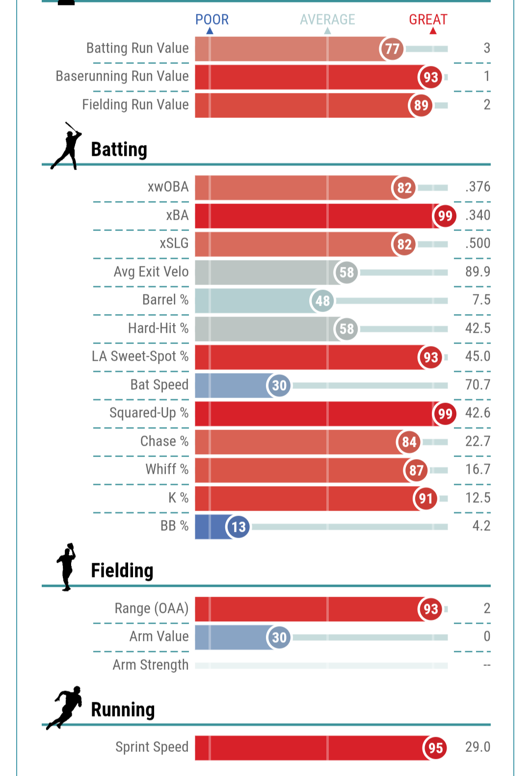 Even if you just take his ev, it’s 89.9 which is average…I don’t know, maybe he hits 8-12 HRs, instead of 2, but he does make good contact so maybe .270+ instead of .230 and he has 30+ steal speed….i don’t hate him